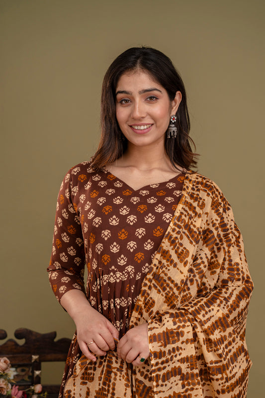 Coffee Brown Elegance: Rayon Kurta Set with Malmal Dupatta
