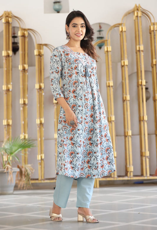 Elegant Blue Anarkali Cotton Kurta Set