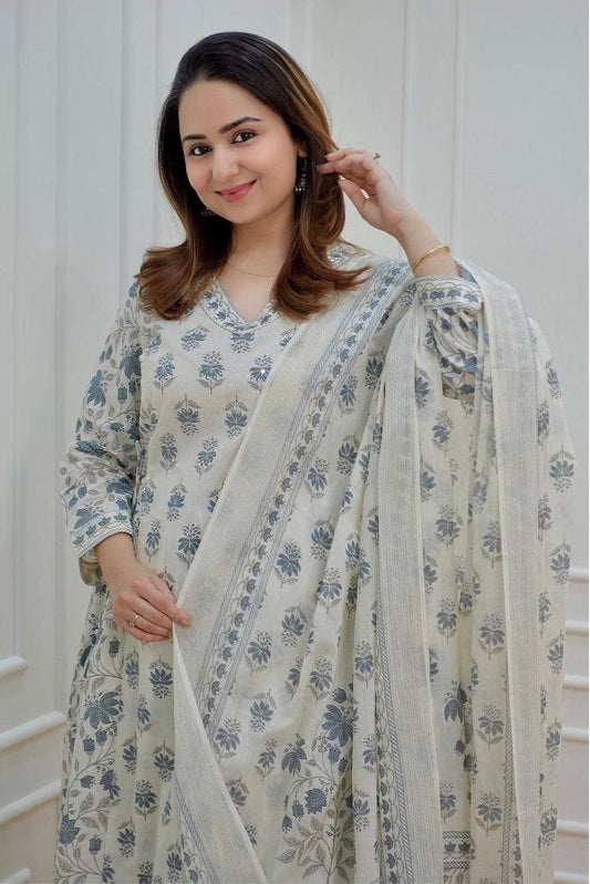 White Bliss: Cotton Flex Kurta Set with Khadi Silk Dupatta