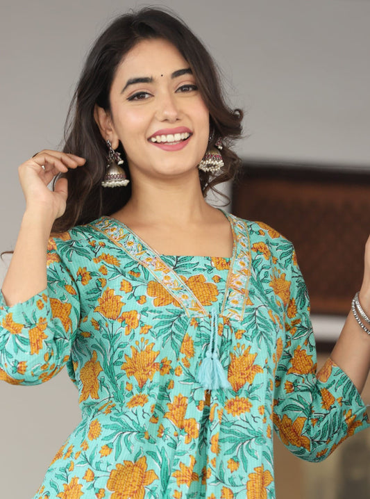 Vibrant Green Anarkali Cotton Kurta Set