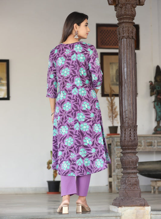Vibrant Purple Anarkali Cotton Kurta Set