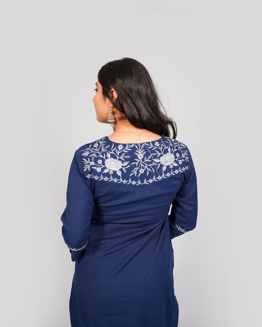 Navy Blue Grace: Embroidered Cotton Kurta Set