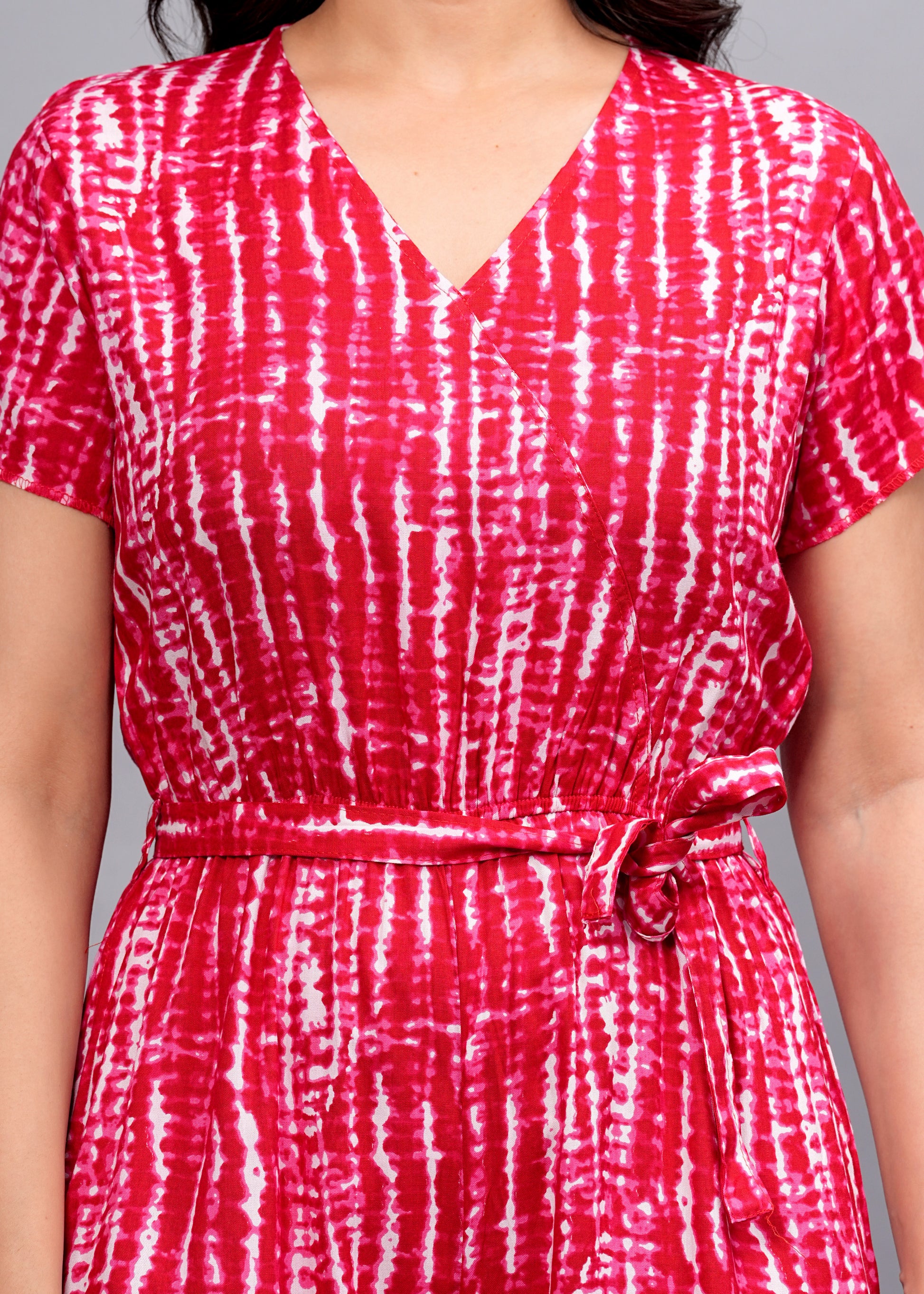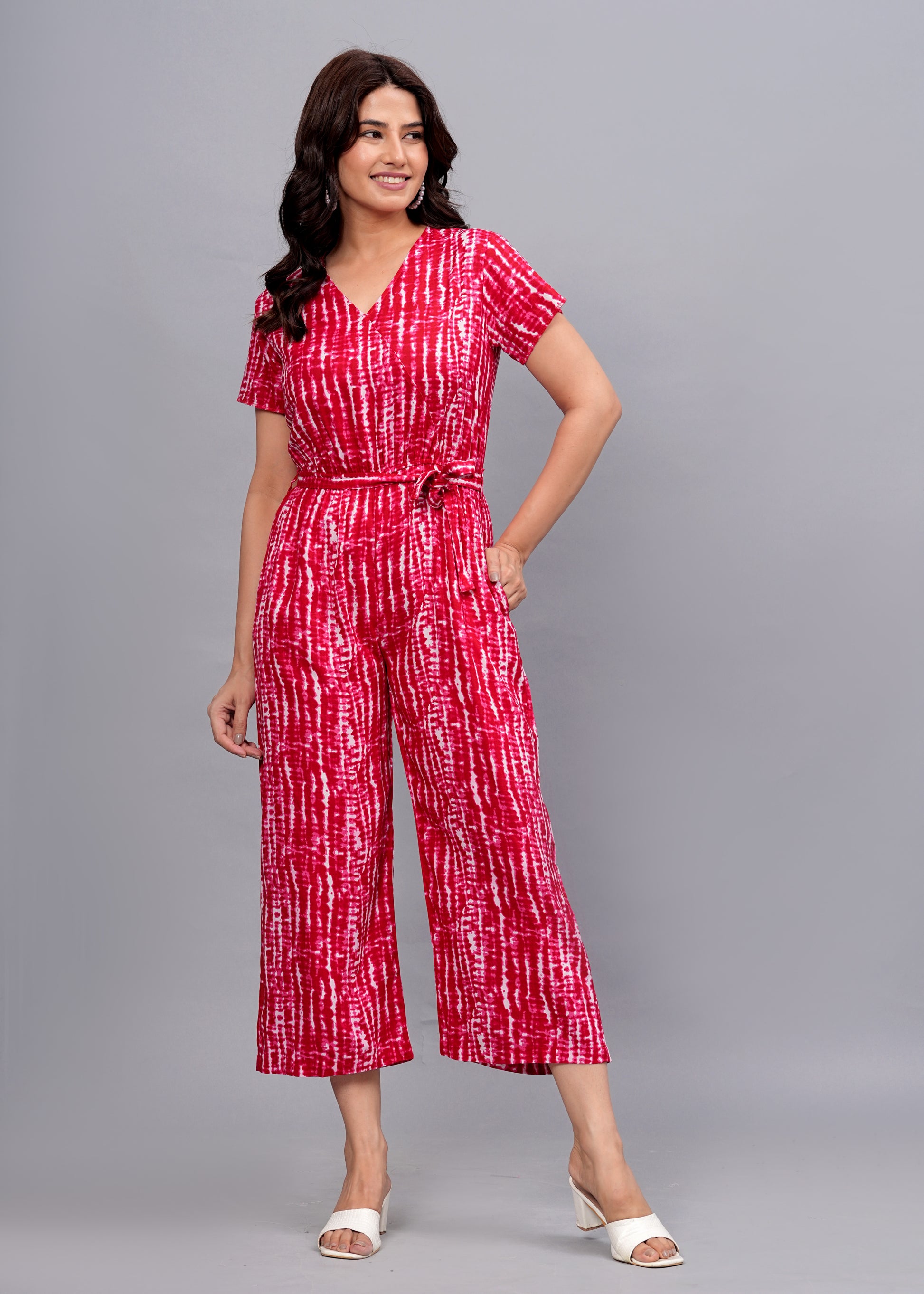 Red Radiance: Geometric Print Rayon Jumpsuit