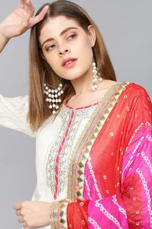 White Magic: Lurex Kurta Set with Bandhej Dupatta