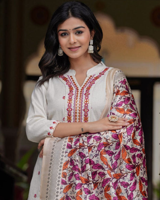White Bliss: Cotton Flex Kurta Set with Khadi Silk Dupatta